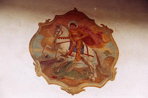 Luftmalerei (paintings on buildings) are common in the area. The common theme of George and the Dragon is painted on the side of the former inn.