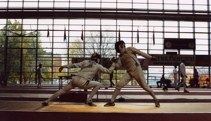 Mark (right) looking at the box, while his opponent (left) also looks at the box.