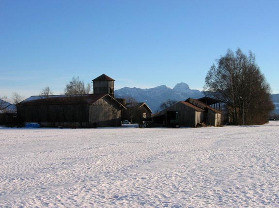 The Wendelstein framed by a nearby barn.