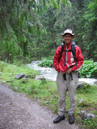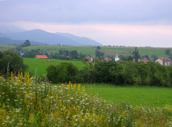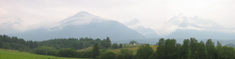 We had packed sleeping pads and sleeping mats. All the guide books specifically explained that the Tatras become very popular in summer and the huts are usually packed to overflowing. It is not uncommon to have to sleep on the floor. Imagine our surprise, then, when we discovered we could get a beautiful double all to ourselves for 412 Koruny (about $12.50) per night. We even had our own sink. Very soon we were dry and warm -- and very tired. But happy. Unfortunately the rest of the story is less happy. This trip was, really, a flop. The next morning we woke up and it was pouring rain out. Not only that, but my knees hurt. A lot. Too much all at once -- a full pack, a hard route, a long hike. We decided it would not just be unpleasant to try to hike up Rysy, but it was also a bit dangerous, especially given my knees. We decided to wait out the day at Popradske and hope for better weather and happier knees the following day. No luck. My knees felt a bit better, but the rain was coming down as hard as ever. I was amazed. It had poured non-stop for over 24 hours. It kept raining. We decided to give up and descend back into the valley. From there we could take a bus back to Stary Smokovec and retrace our route by bus and van back around to the northern side of the Tatras. It was probably a good decision, too, as the temperature dropped and hiking became not just wet, but downright cold. Instead of T-shirts, we were hiking in sweaters, rain jackets, hats, and gloves. Back at Zakopane in Poland we found ourselves a room and contemplated what to do next. We spend the next two days wandering around the tourist town of Zakopane a bit and trying out one of the valley hikes, just to do something. We were tired of playing cards, of making up crossword puzzles for one another, of simply being indoors. It was still pouring rain. Seventy-two hours and counting. We had a TV in our room and the weather forecast clearly explained that there was a weather system that had come up from the south, over Croatia and Hungary, and was now sitting, swirling, directly over southern Poland and northern Slovakia. It wouldn't budge. The smiling woman weathercaster told us cheerfully that the weather was beautiful in all the rest of Europe, in the low eighties and sunny. "Europe, enjoy clear weather for the next several days." All of Europe, but us, that was. Even in Bavaria, where it had rained almost every day from April to July, had a sunny week that week.