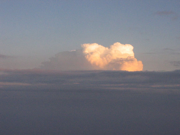 The rivers rose as water cascaded down from the mountains. On the TV there was news of local villages flooding. As we were landing in Munich, I caught this glimpse out the airplane window. This single cloud, hovering to the south -- probably over our town of Bad Aibling, I thought gloomily. The weather was following us home.