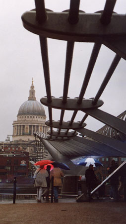 The river Thames. The Millenium Bridge with St. Paul's in the background.